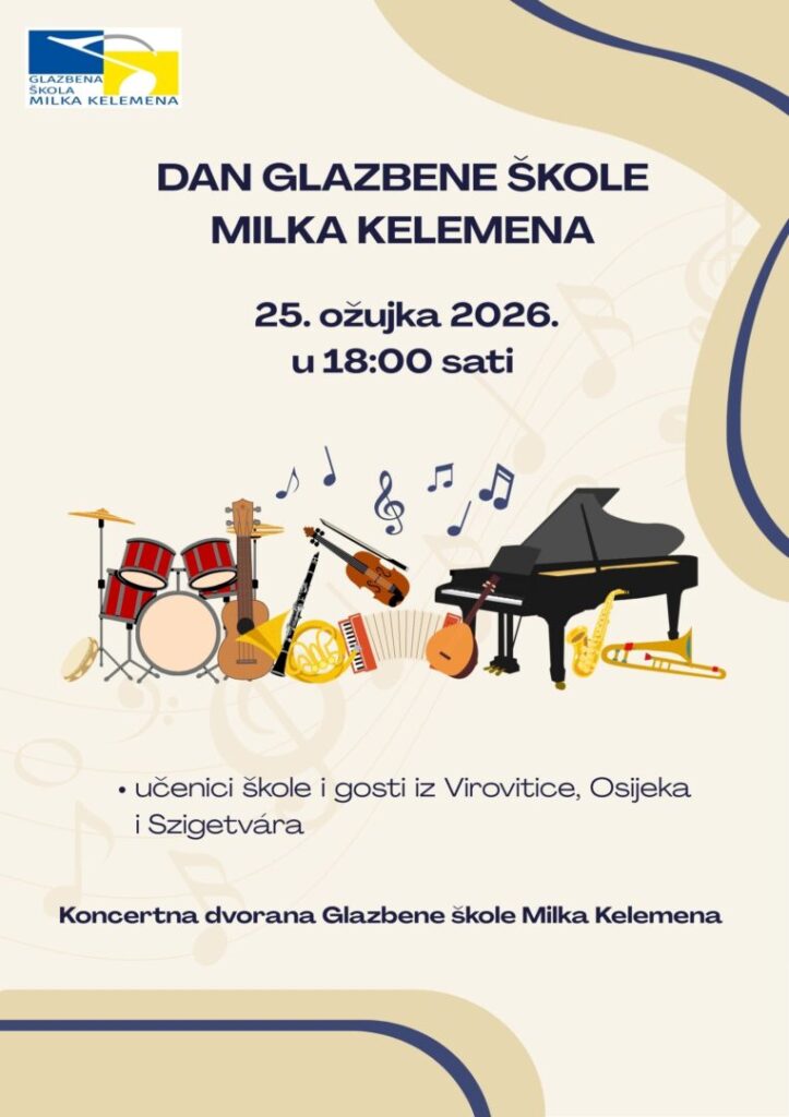 Dana 25. ožujka 2026. godine u 18:00 sati održat će se Koncert učenika i gostiju iz Virovitice, Osijeka i Szigetvára, a kojim će se predstaviti raznolik program odražavajući njihov trud, napredak i ljubav prema glazbi.