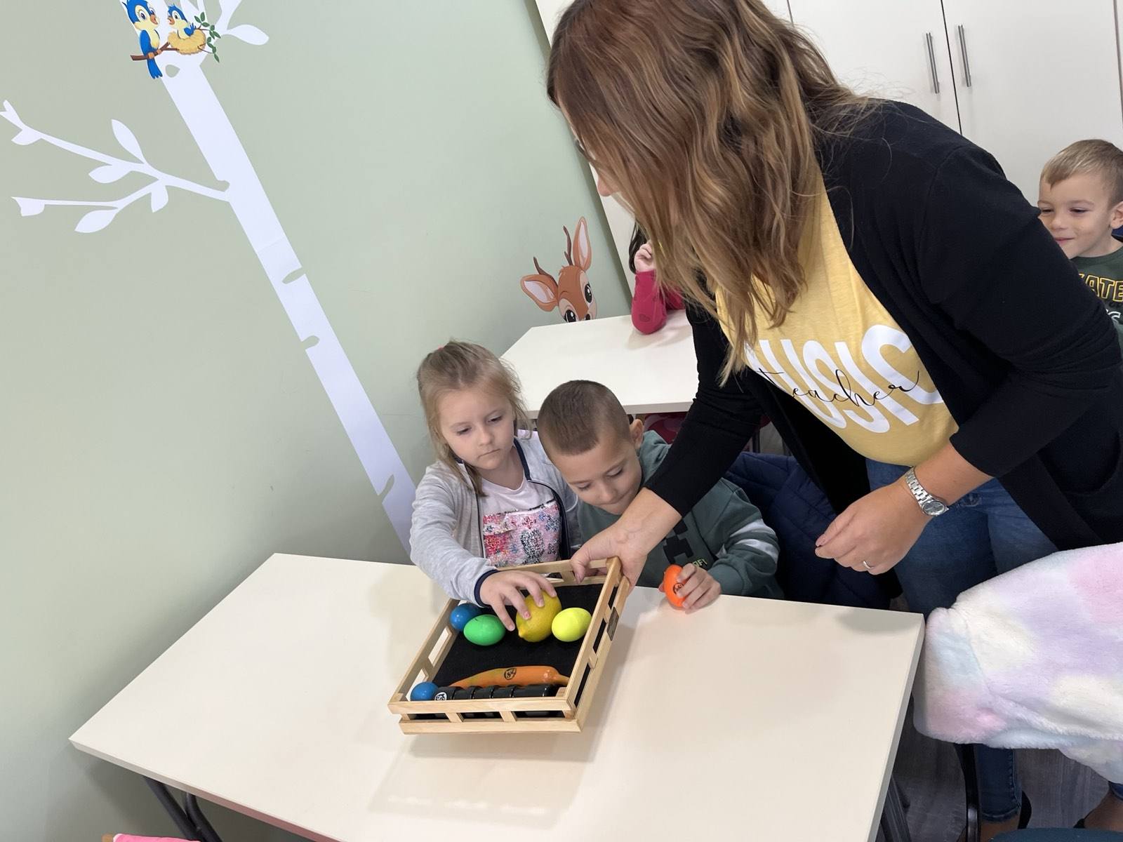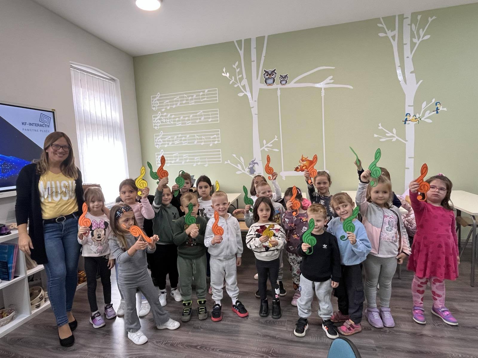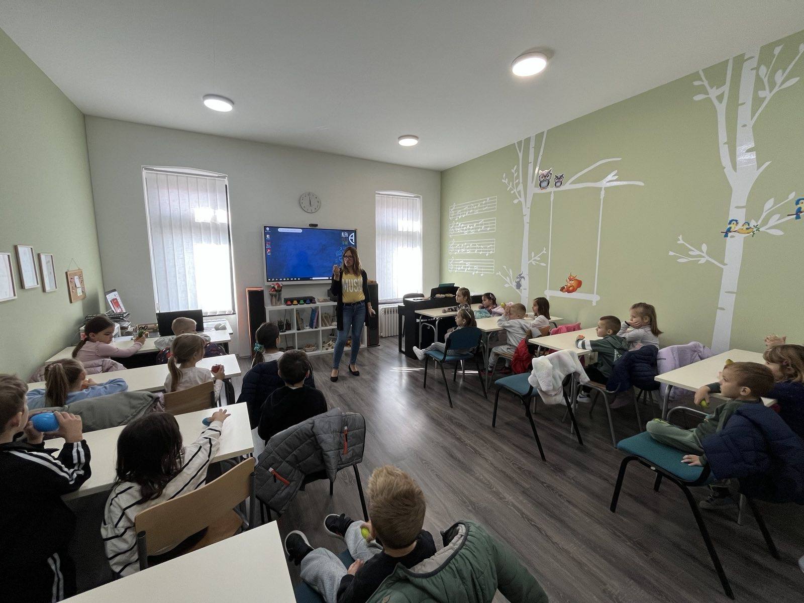 U svijet glazbe i zvukova mali su gosti zakoračili sviranjem raznih udaraljki, prateći ritmove koje je izvodila učiteljica. Nakon glazbene igre uslijedila je priča „Zvučna šuma“, u kojoj su se izmjenjivali zvukovi životinja, kiše i munje, a djeca su ih oponašala pomoću instrumenata.