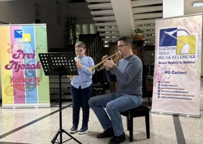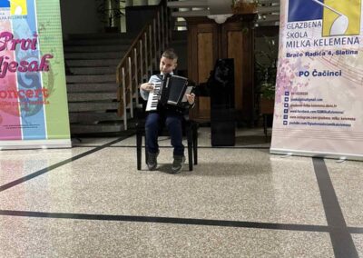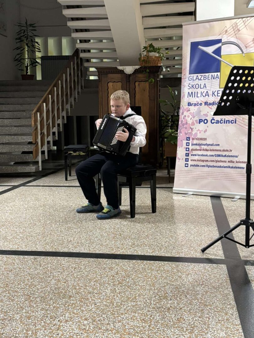 Dana 19. veljače održan je svečan i poseban trenutak za našu školu. Naime, Područni odjel u Čačincima otvoren je početkom školske godine, a ovo je bio prvi koncert Područnog odjela u Čačincima i to učenika prvog razreda. Naši najmlađi glazbenici izveli su 12 točaka na različitim instrumentima. Čestitamo im na njihovoj hrabrosti, trudu i radu tijekom proteklog razdoblja, ali također čestitamo i njihovim učiteljima na izvrsnom vodstvu i podršci. Nadamo se kako je ovo prvi od mnogih budućih izvrsnih koncerata.