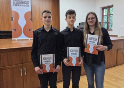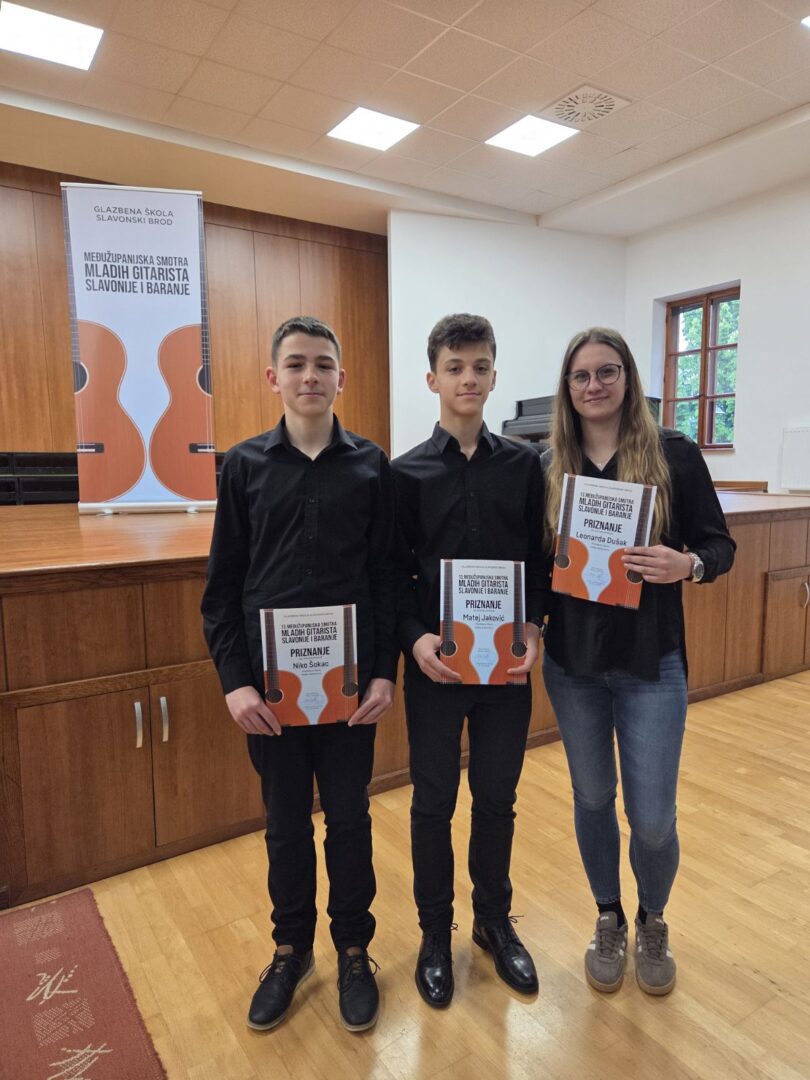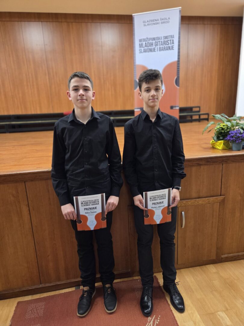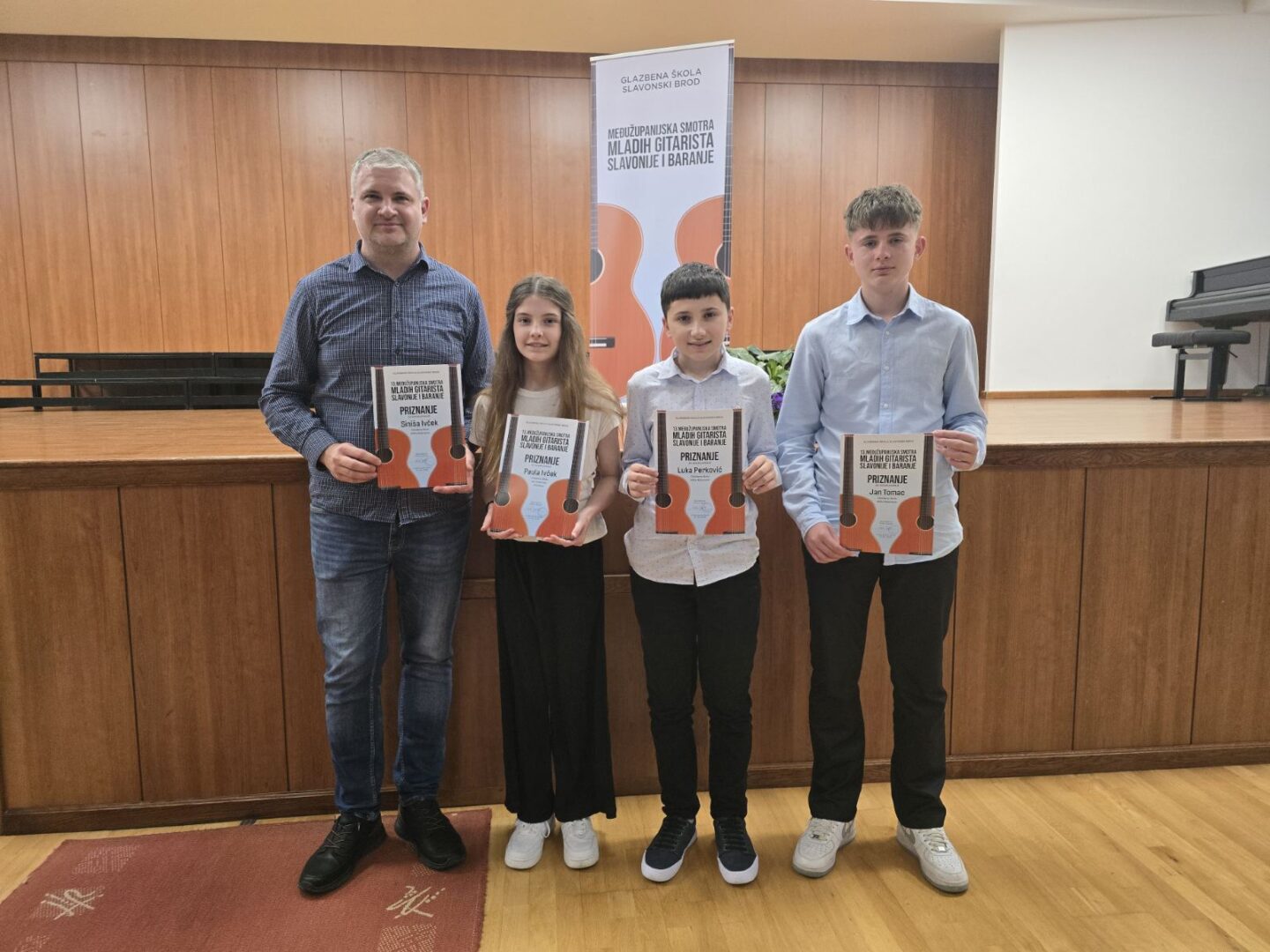Dana 21. travnja 2026. održana je XIII. međužupanijsku smotra mladih gitarista Slavonije i Baranje u Slavonskom Brodu. Učenici naše škole Matej Jaković, Jan Tomac, Niko Šokac i Luka Perković pokazali su svoju glazbenu vještinu i ostvarili veliki uspjeh uz odlično odsviran glazbeni program.